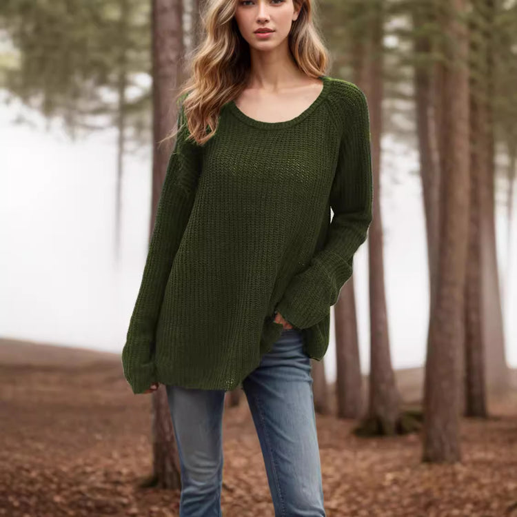 Flare Sleeve Sweater Loose Round Neck Long Sleeve Casual Women’s Top