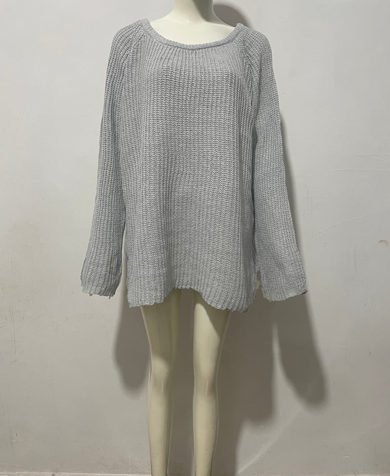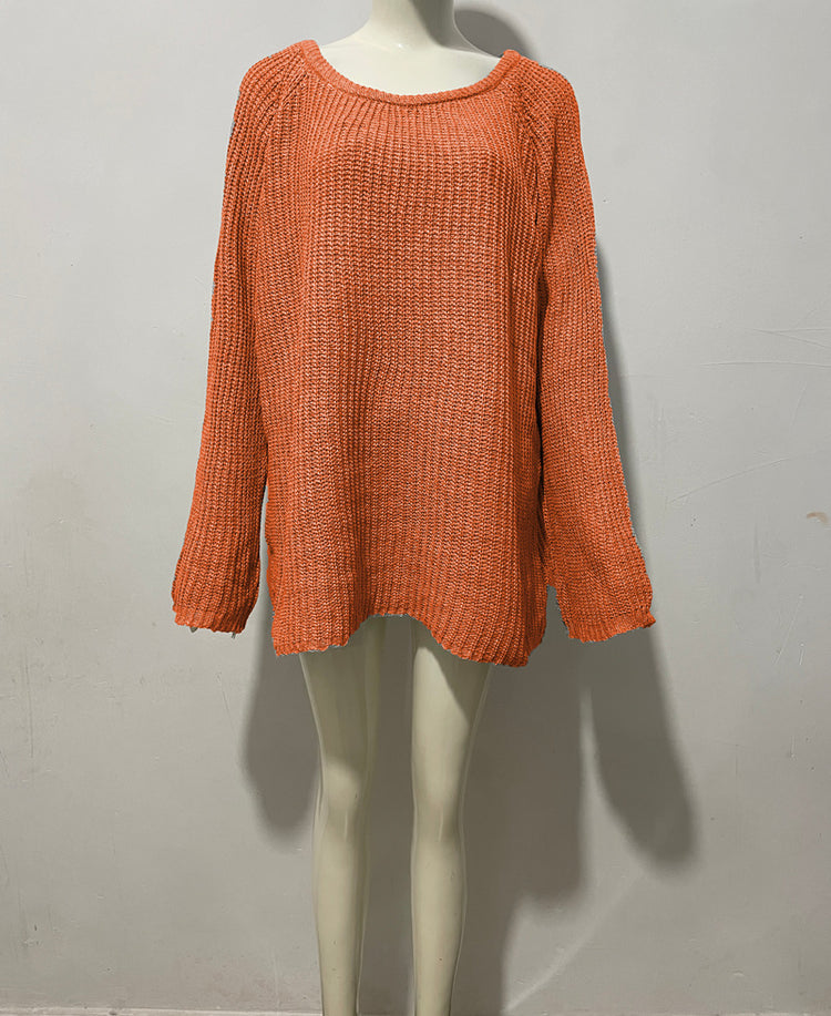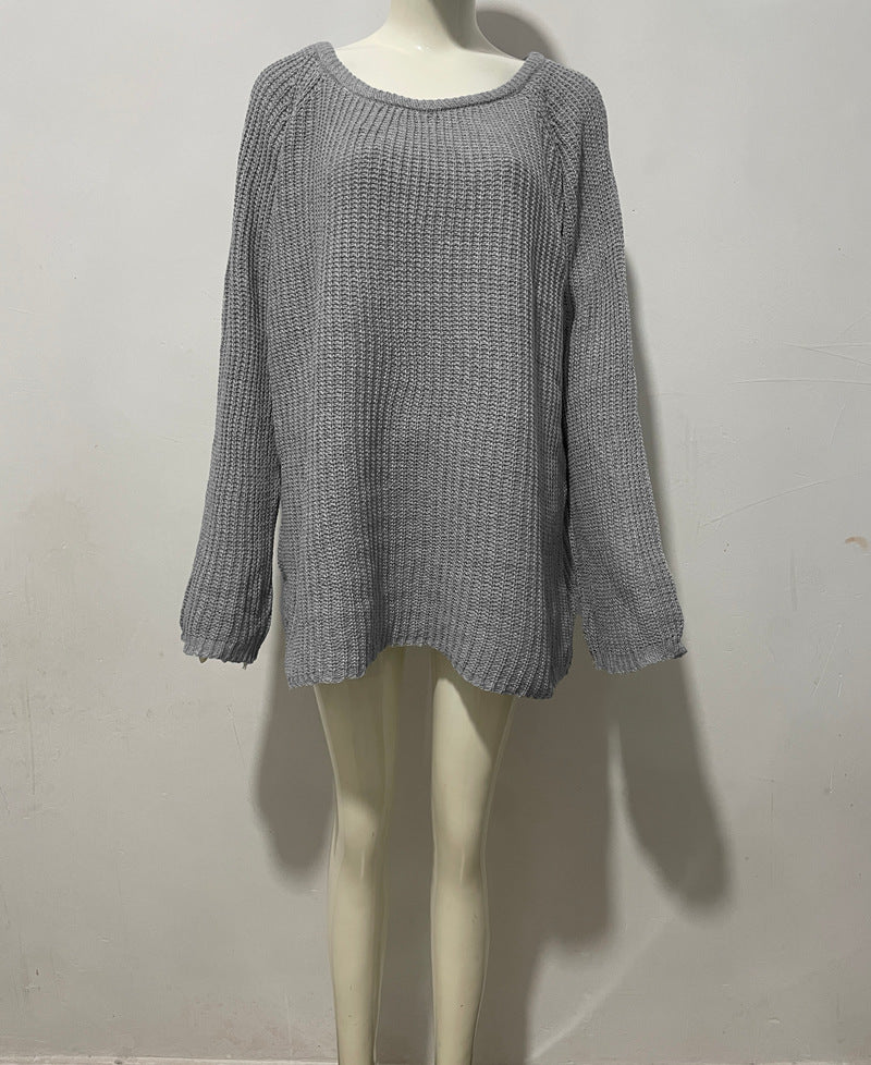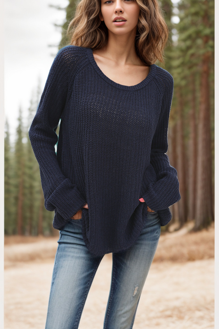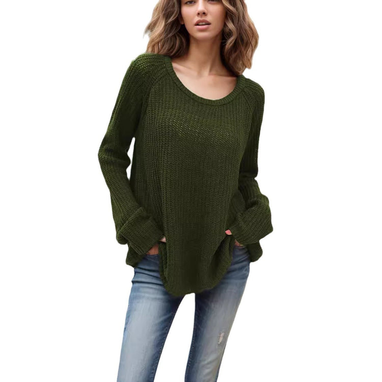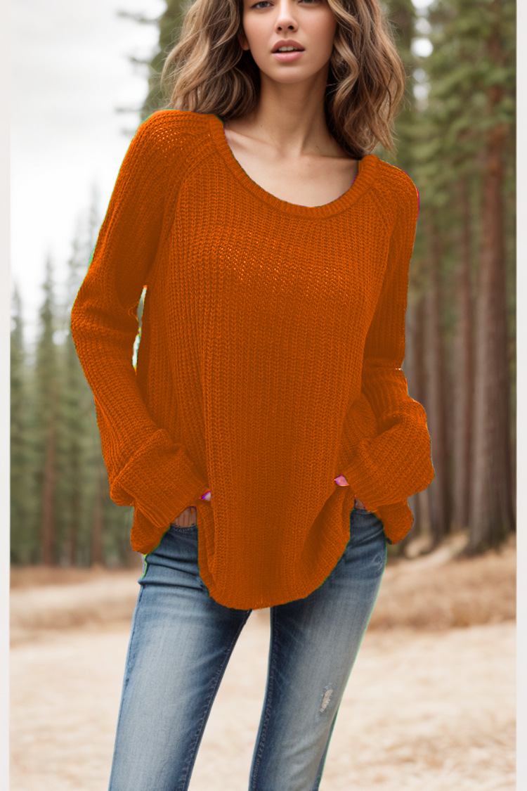 Flare Sleeve Sweater Loose Round Neck Long Sleeve Casual Women’s Top
