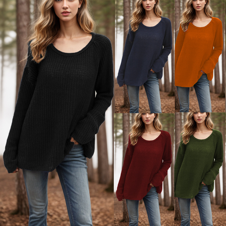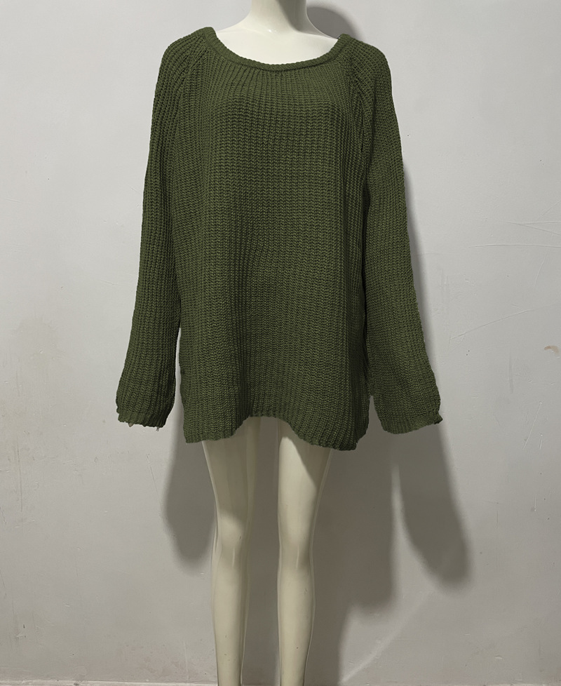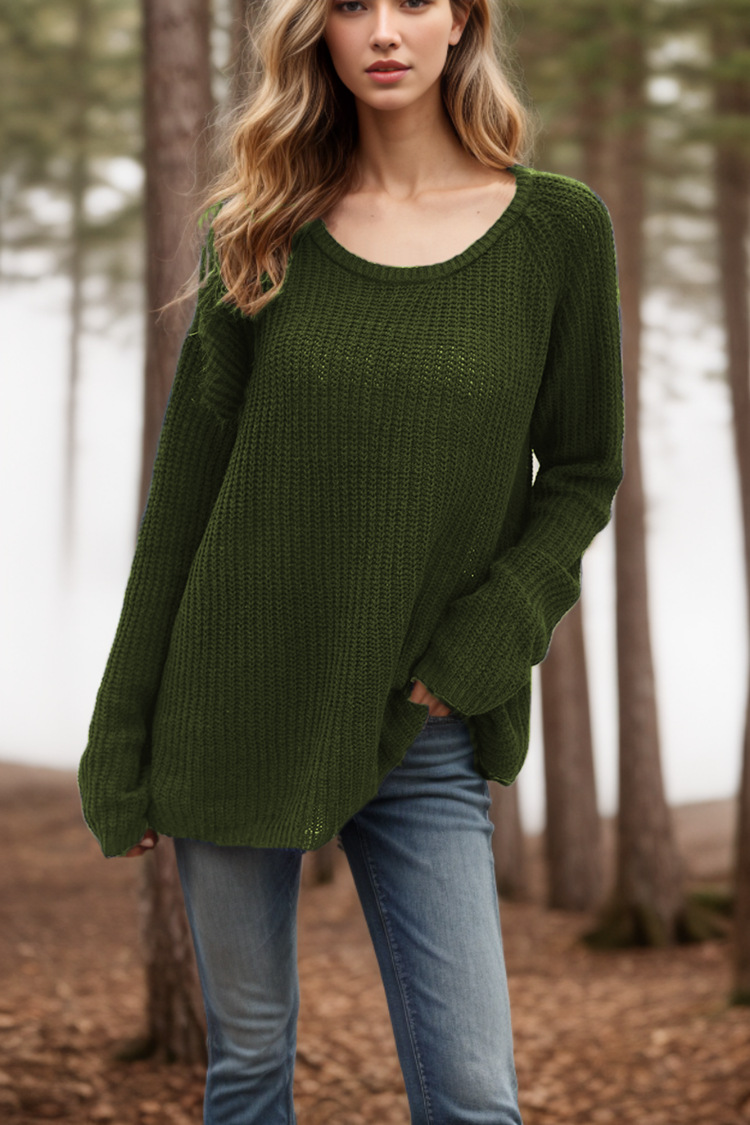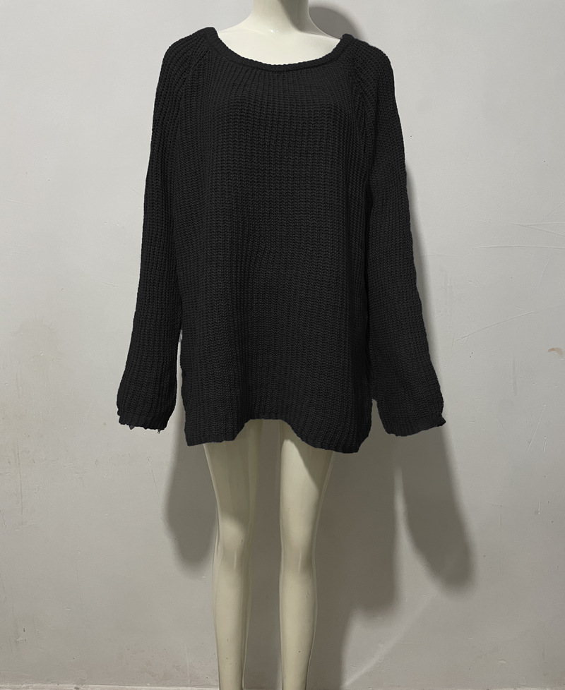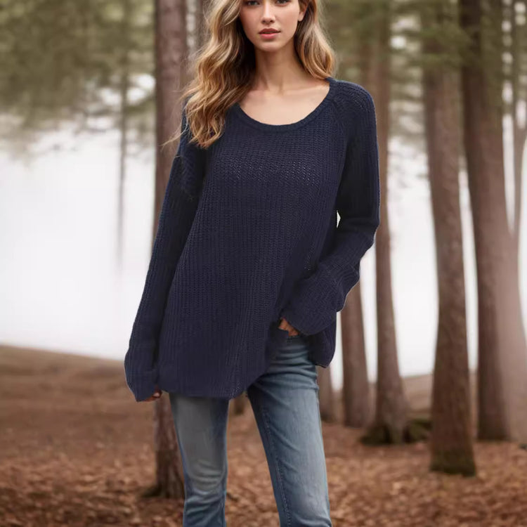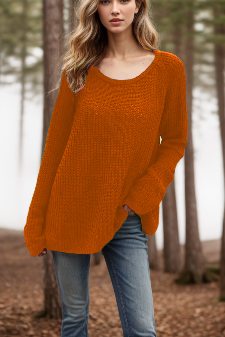 Flare Sleeve Sweater Loose Round Neck Long Sleeve Casual Women’s Top