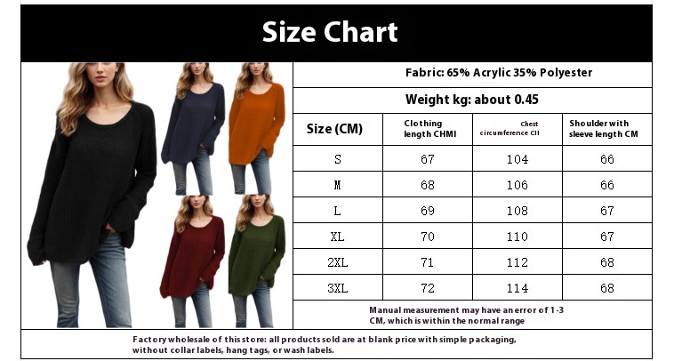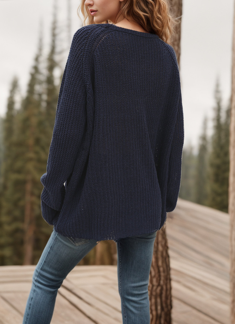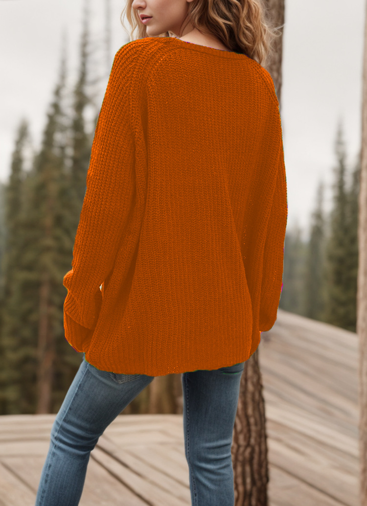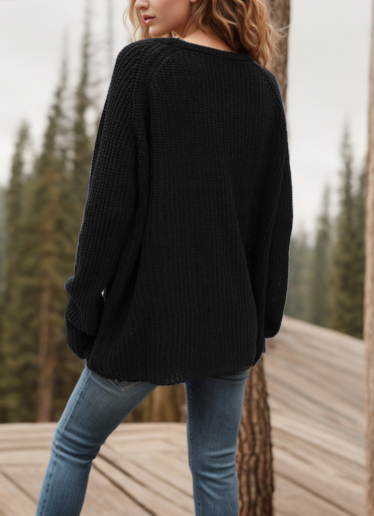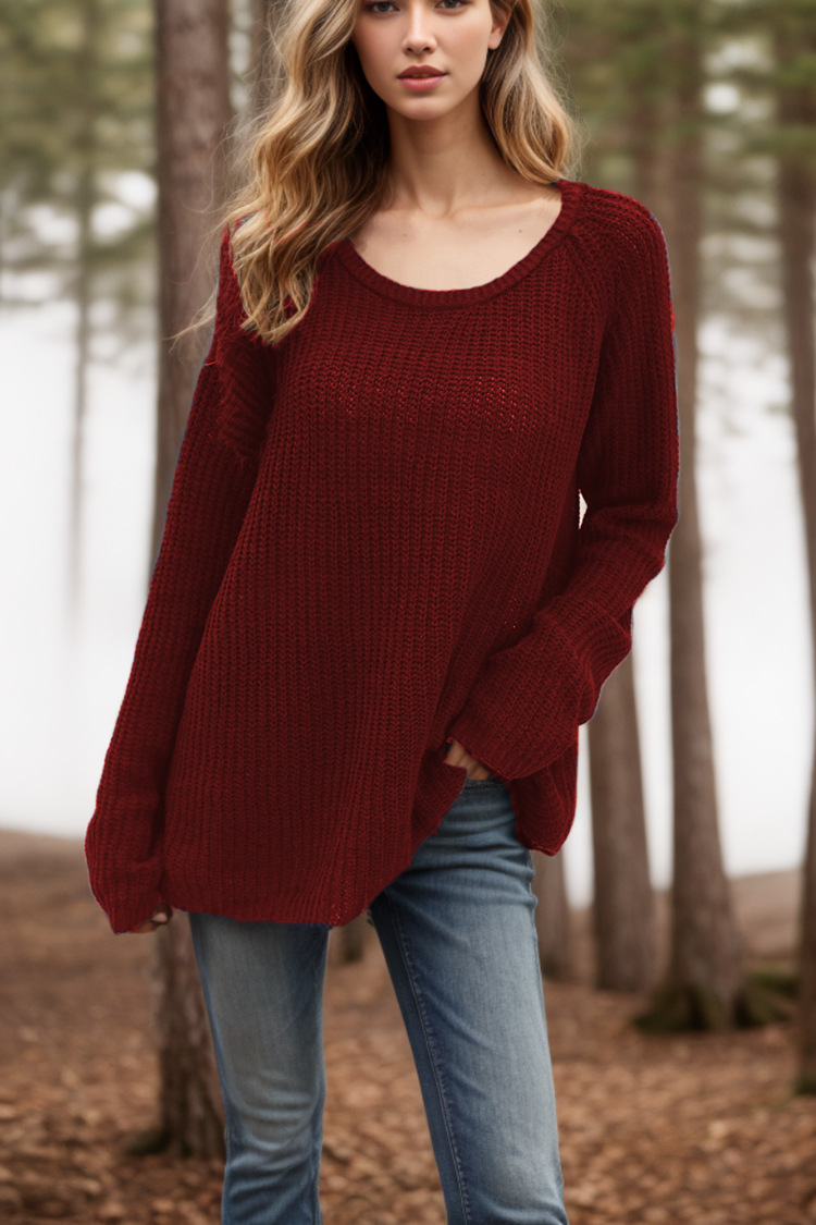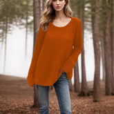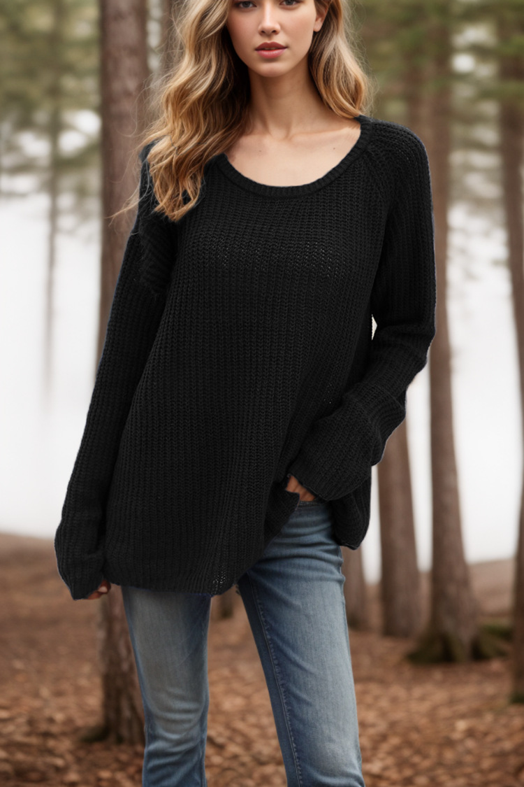 Flare Sleeve Sweater Loose Round Neck Long Sleeve Casual Women’s Top