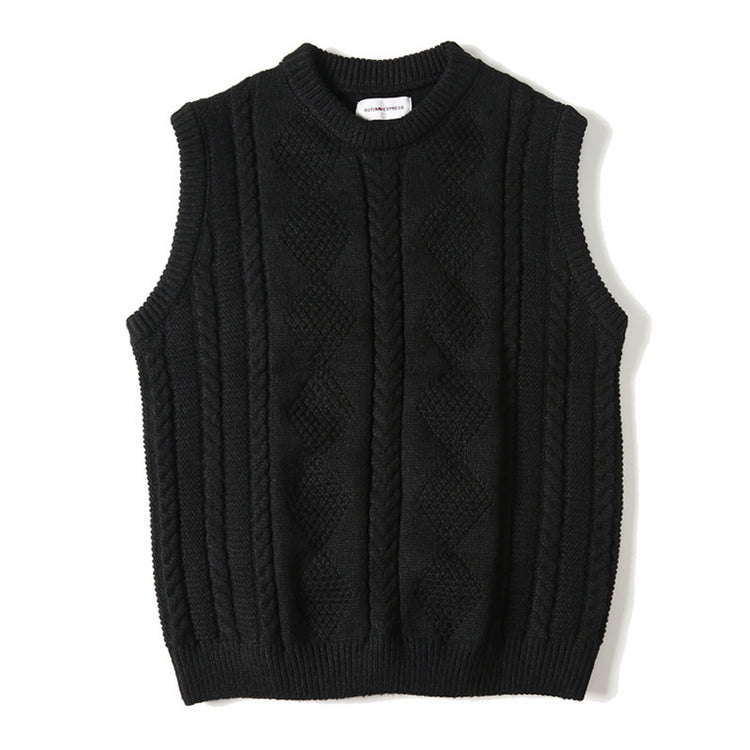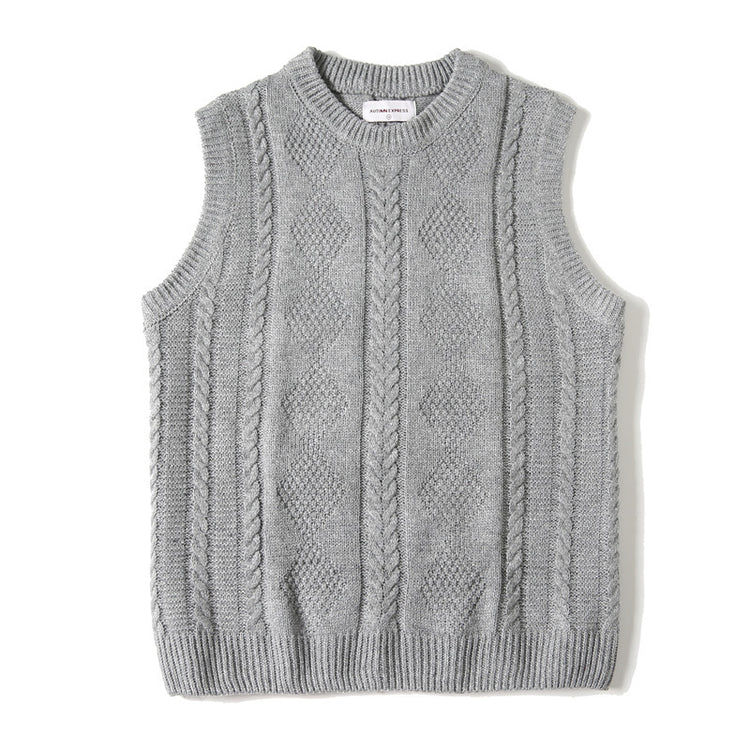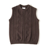 Jacquard Knit Sweater Vest Round Neck Thick Cable-Knit Loose Tide Style