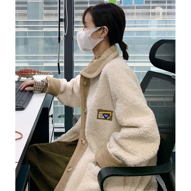 Korean Style Lamb Wool Corduroy Coat Loose Thick Warm Winter Outerwear