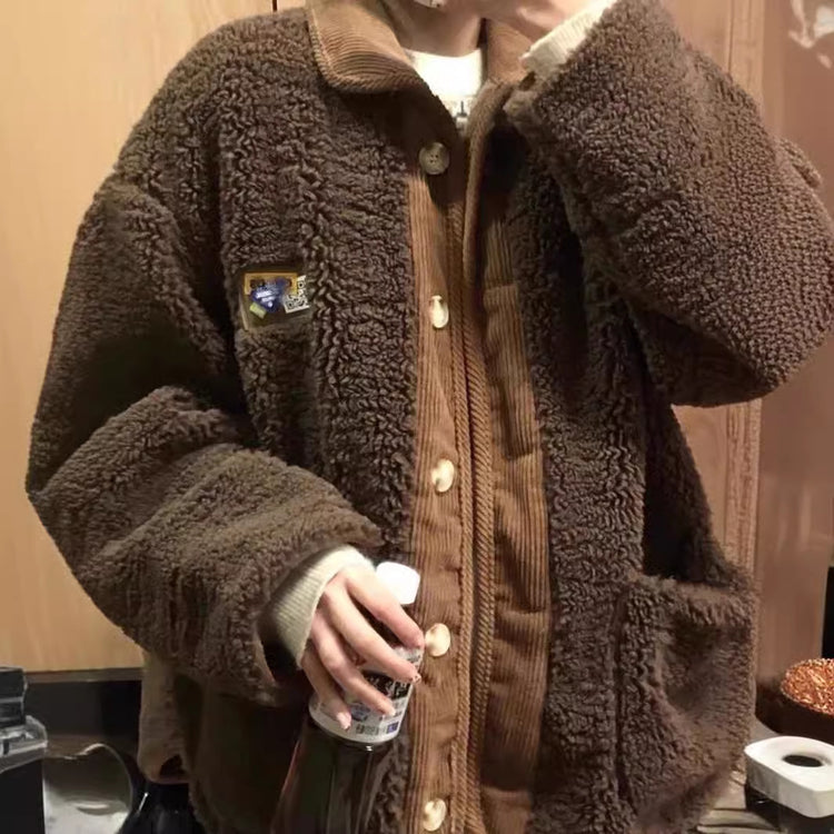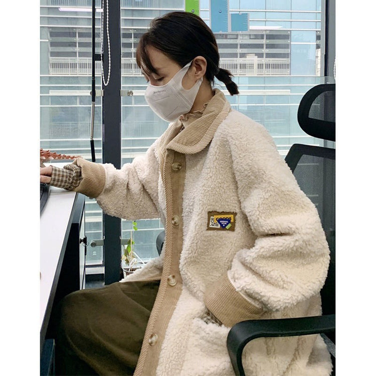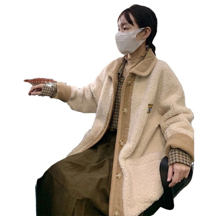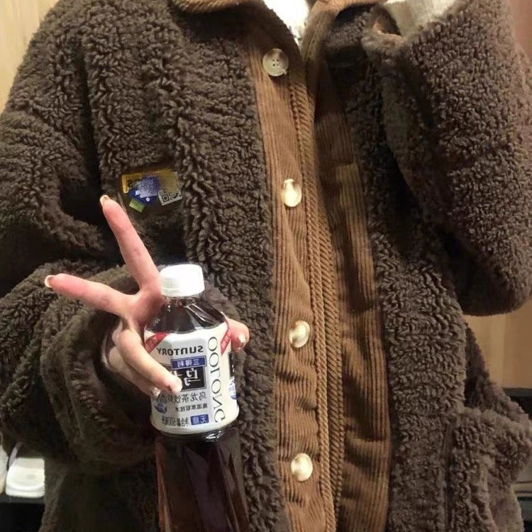 Korean Style Lamb Wool Corduroy Coat Loose Thick Warm Winter Outerwear