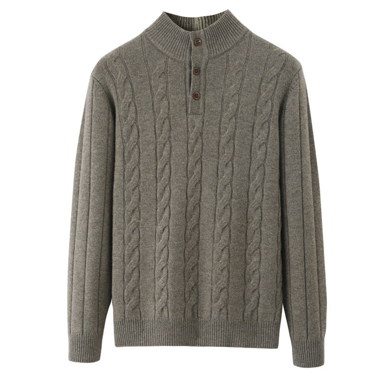 Men’s Half-Height Henry Collar Sweater Thick Twisted Cable-Knit Knitwear