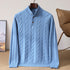 Men’s Half-Height Henry Collar Sweater Thick Twisted Cable-Knit Knitwear