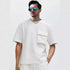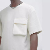 Men’s Chambray Crew Neck Top Casual Loose 5-Point Sleeve with Patch Pocket