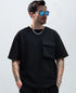 Men’s Chambray Crew Neck Top Casual Loose 5-Point Sleeve with Patch Pocket