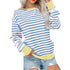Striped Contrast Color Top Trendy Round Neck Long-Sleeve for Women