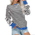 Striped Contrast Color Top Trendy Round Neck Long-Sleeve for Women