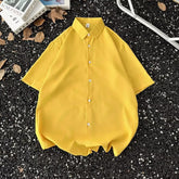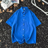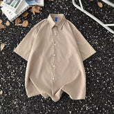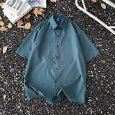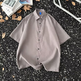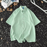 Men’s Japanese Retro Solid Color Short Sleeve Cardigan – Casual Leisure
