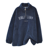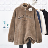Velvet Padded Sweater Loose Mid-Length Half-Zip Stand Collar Winter Top